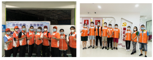 每隔一个小时,第二批党员突击队队长钟浩都会给在其他区域服务的队员致电,提醒他们一定要注意安全,照顾好自己。“我们男生不怕晒”“你们先吃,我们不饿”,在志愿工作过程中,“守护”处处可见,除了以关爱居民为己任,队员们也彼此关心、相互照顾。突击队队员莫加嘉感慨道:“烈日当空之下,6名男队员主动把有遮阳棚的检测登记岗让给我们4名女队员。”风雨骤来,淋得人猝不及防,志愿者们的衣物全部湿透了,集团迅速发挥群团工作力量,紧急调集多件干净替换衣物,即刻送达现场,令志愿者的心中倍感温暖。